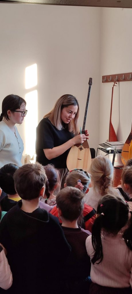 Балалар музыканың әлемімен танысты: фортепиано, домбыра, баян, Баян және жетіген дыбыстарын тыңдап, сольфеджио және Музыка теориясы сабақтарын тамашалады.
